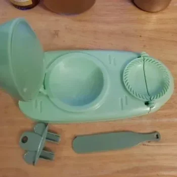 This dumpling maker proved to be highly effective for us. My wife enjoys preparing dumplings and empanadas, and this handy device efficiently flattens the dough and wraps it perfectly around the filling. To ensure a snug fit, it's essential to place the gadget on a stable, non-slip surface. Cleaning it in the sink is a breeze, leaving it ready for future use. We hope it remains durable for a long time.