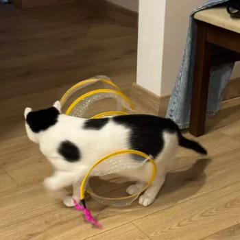 i’m really pleased with this cat tunnel. my cats absolutely love it. the crinkly fabric is a big hit and they enjoy running through it and hiding. it’s well-made and sturdy, and the setup was quick and easy. it’s also lightweight and easy to move around, which is great. the tunnel folds up nicely when not in use, saving space. my cats are more active and playful now. this tunnel has definitely added a lot of fun to their playtime. highly recommend it for anyone with cats.