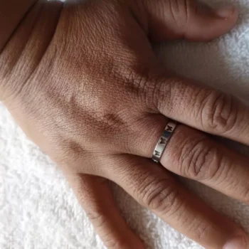 This hypoallergenic ring has been nothing short of perfect for me. I have sensitive skin and this piece causes no irritation at all. Plus, its resistance to both acid alkali ensures long-lasting shine.