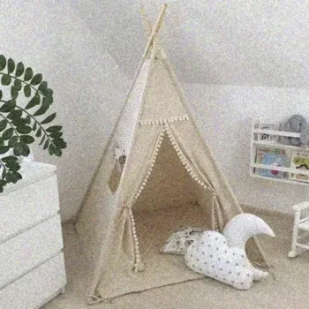 got this teepee tent for my kids and it’s been a big hit. they love having their own little space to play and read. the tent is very well-made, with sturdy wooden poles and durable fabric. it was easy to set up and only took about 15 minutes. the design is adorable and fits well in their room. my kids especially love the small window and the space inside is just right for them to sit and play comfortably. it’s also easy to take down and store when needed. this tent has provided hours of entertainment and is a wonderful addition to their play area. highly recommend it to anyone looking for a fun and stylish play tent for their kids.