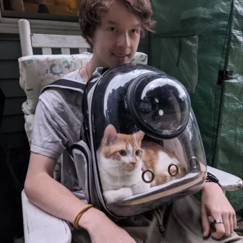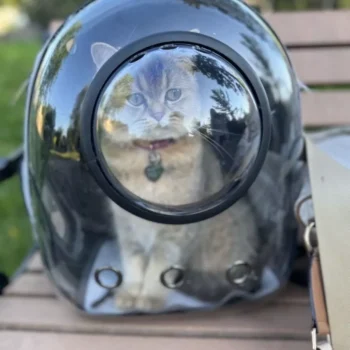 I love this cat backpack! The transparent design allows my cat to see their surroundings, which keeps them entertained and less anxious. The ventilation is top-notch, ensuring my cat stays comfortable and cool. The backpack is very sturdy and well-made, with padded straps that make it easy to carry. It’s stylish and I receive compliments on it all the time. It’s perfect for vet visits, walks, or just taking my cat out for some fresh air. My cat seems to enjoy being inside and feels secure. This backpack has made our outings much more enjoyable. I highly recommend it to any cat owner.