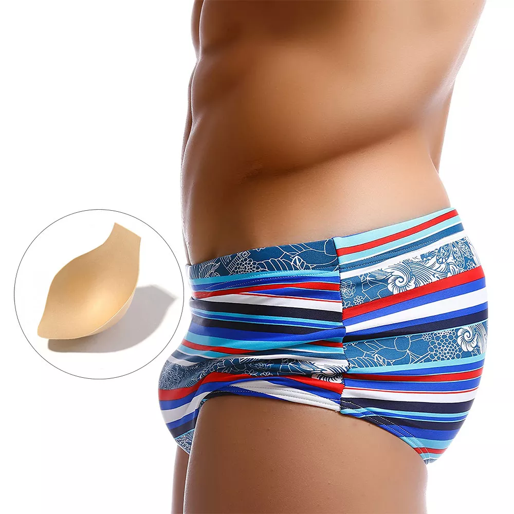 Crafted with a high-quality fabric blend of 80% polyester and 20% spandex, these trunks feel soft on the skin while allowing for just the right amount of stretch. The supportive inner cup enhances your natural shape without discomfort, offering a subtle lift and secure feel during all water activities. The striped design adds a timeless appeal, making these shorts as stylish as they are practical. And thanks to their fast-drying, lightweight material, you can go from sea to shore with ease.