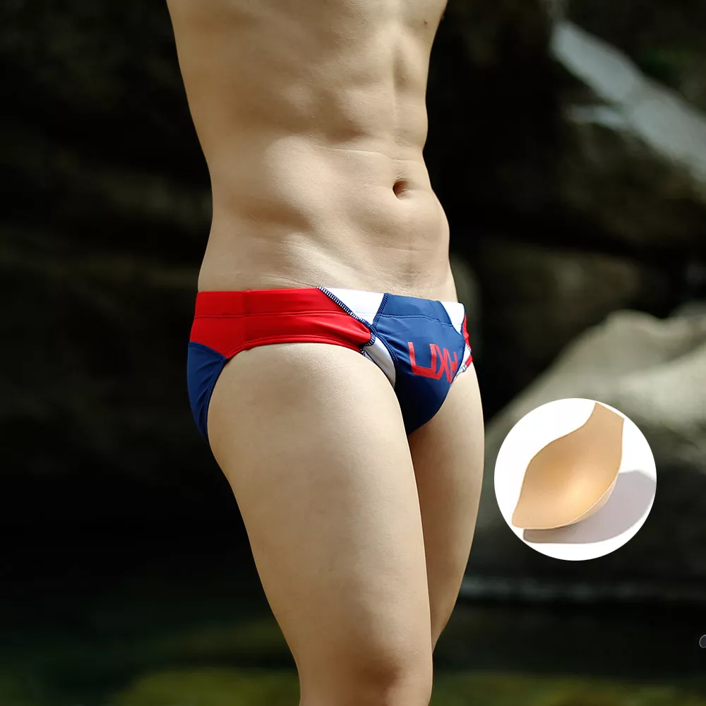 Crafted from a high-quality blend of 80% polyester and 20% spandex, these briefs offer just the right amount of stretch and support. The breathable fabric hugs your body while offering freedom of movement for swimming, surfing, or simply soaking up the sun. The built-in padded front enhances your natural shape, giving you a confident boost where it counts.