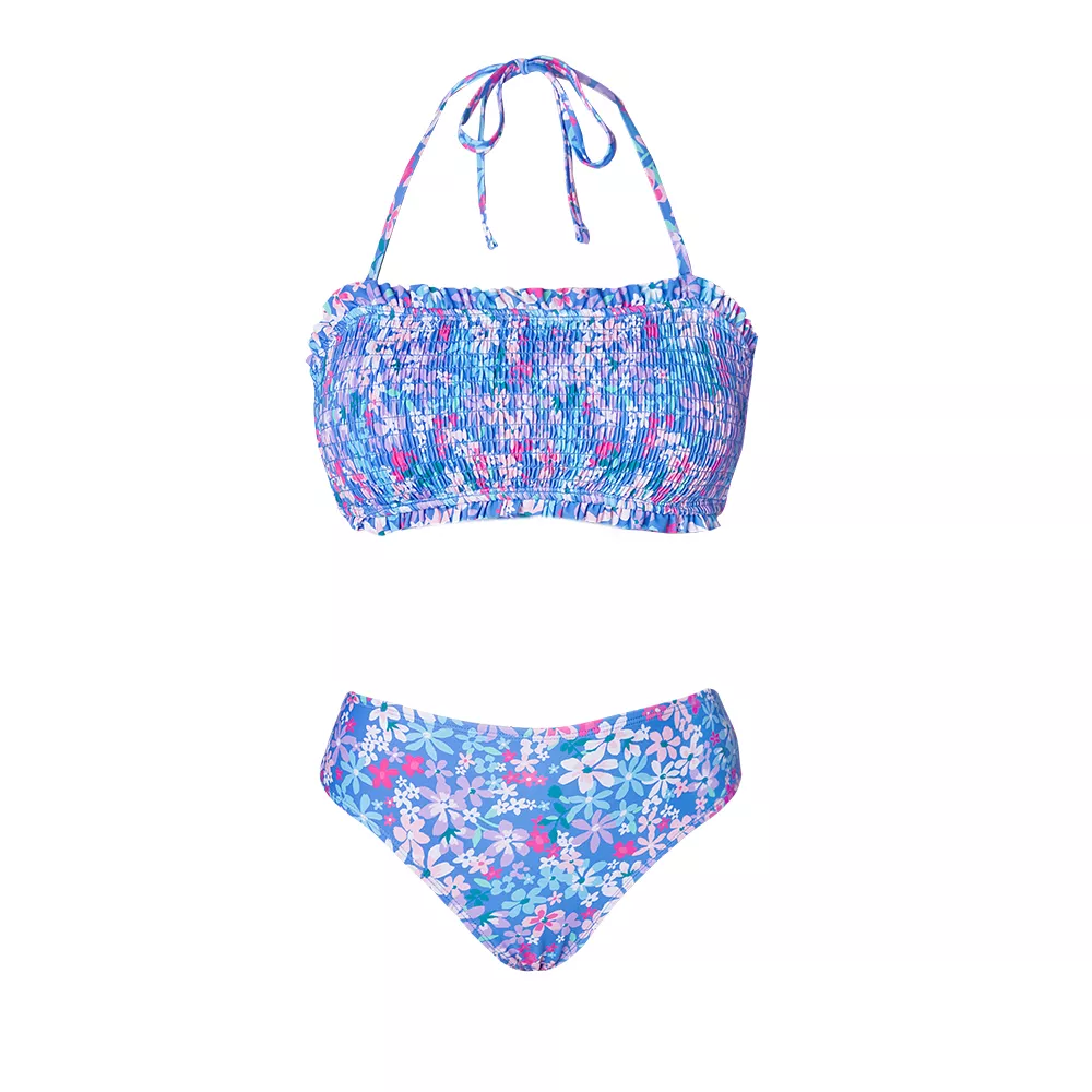 Turn heads this summer with the ultimate beach-ready look. This smocked tie-back bandeau bikini set is your go-to two-piece for sun-soaked days at the beach, lounging by the pool, or soaking up the vibes on a tropical vacation. With its charming floral ditsy print and flirty, feminine silhouette, this swimsuit blends comfort, style, and a touch of bold confidence—everything you need to look and feel amazing wherever the sun takes you.