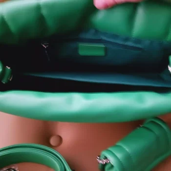 Our tote bag sets itself apart with its unique features and special touches. The soft, pliable leather invites your touch, offering a comfortable feel that doesn’t sacrifice durability. The stunning color palette, including a dazzling green and striking Klein blue, adds a splash of luxury to your ensemble, making it an instant eye-catcher. The detachable mini bag is a versatile addition, perfect for those small essentials, and can be worn separately for a minimalist chic look.