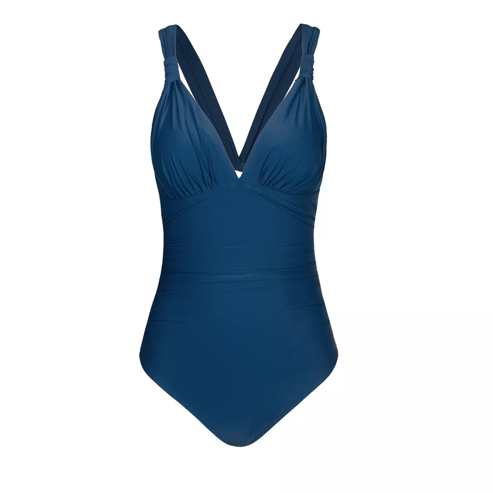 What makes this swimsuit special is its perfect balance of style and functionality. The ruched detailing isn’t just beautiful—it also provides extra coverage and shapes the waist, making you feel your best in and out of the water. The classic solid navy color ensures it never goes out of style, while the fabric blend feels soft against the skin and moves with you effortlessly.